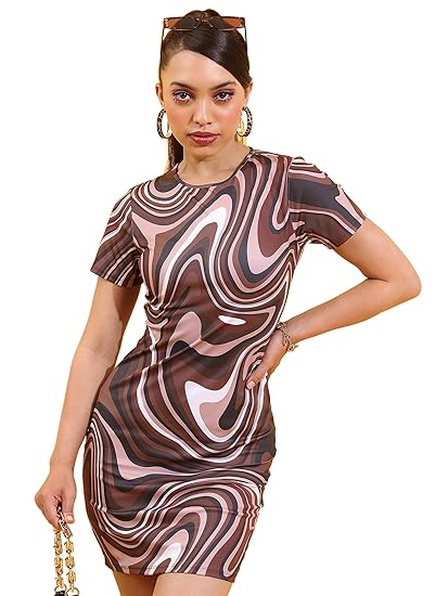 New Arrival DressKETCH Women Bodycon Knee Length Regular Fit Printed Short Sleeve Dress
