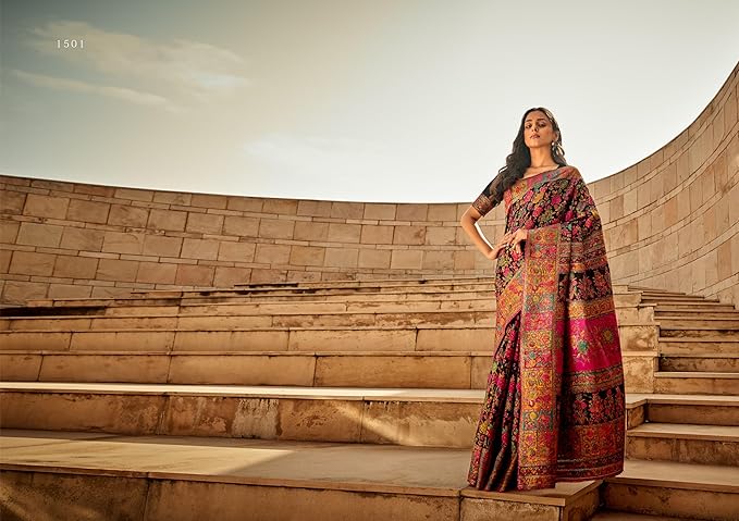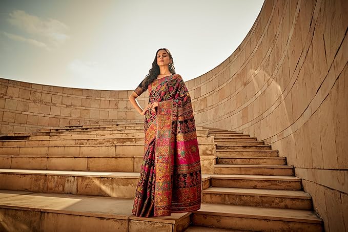 DressesMADHUHANSH Kashmiri Cotton Patola Saree for Women | Cotton Saree | Sarees with Unstitched Blouse | Saree with Blouse Piece | Soft and Skin Friendly