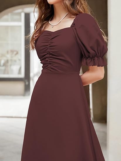 - Generic Name : A-Line Ruched Puff Sleeve Maxi Long Evening Dress