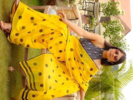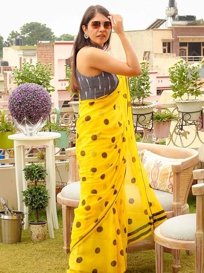 DressesSidhidata Women’s Polka Dot Printed Linen Cotton Saree With Unstitched Blouse Piece (Laddu_Free Size)