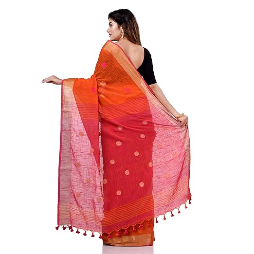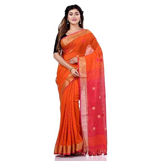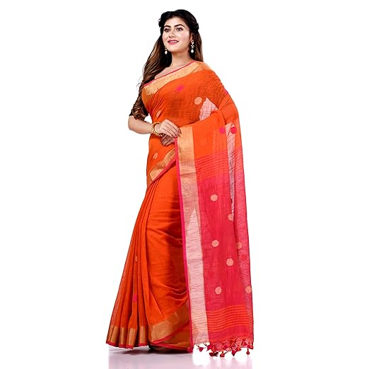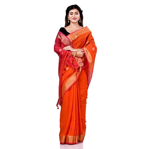 DressesTANTLOOM Women`s Pure Cotton Traditional Bengali Tant Handloom Cotton Saree Round Desigined With Blouse Piece