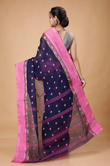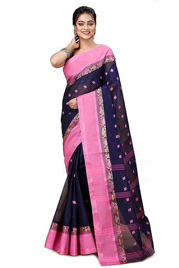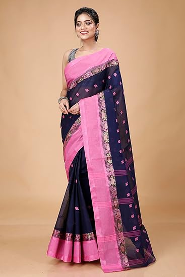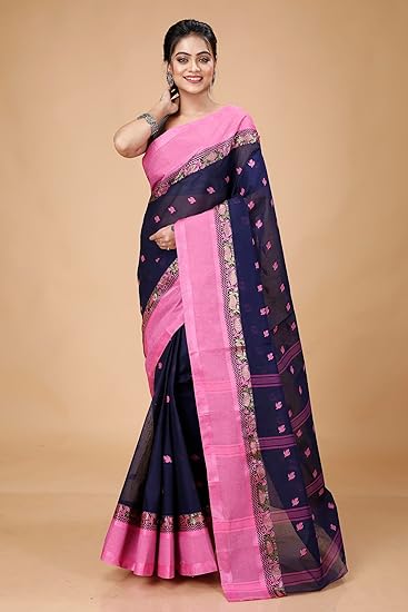 DressesWomen’s Traditional Bengal Tant Pure Cotton Design Border & Butta Tant Saree Without Blouse Piece